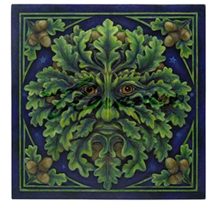 This wonderful plaque brings some nature magic right into your home! The wall decor features the face of the Greenman, lord of the forest and protector of all within it. His face is comprised of oak leaves, and more of them are accompanied by acorns at the corners of the plaque. Truly unique!