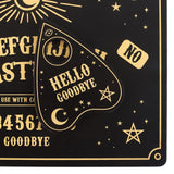 Bring some conversation to the table with this placemat and coaster set featuring a celestial, black and gold talking board design, and a planchette for the coaster. Perfect for styling an alternative tablescape and making an impact on dinner party guests.