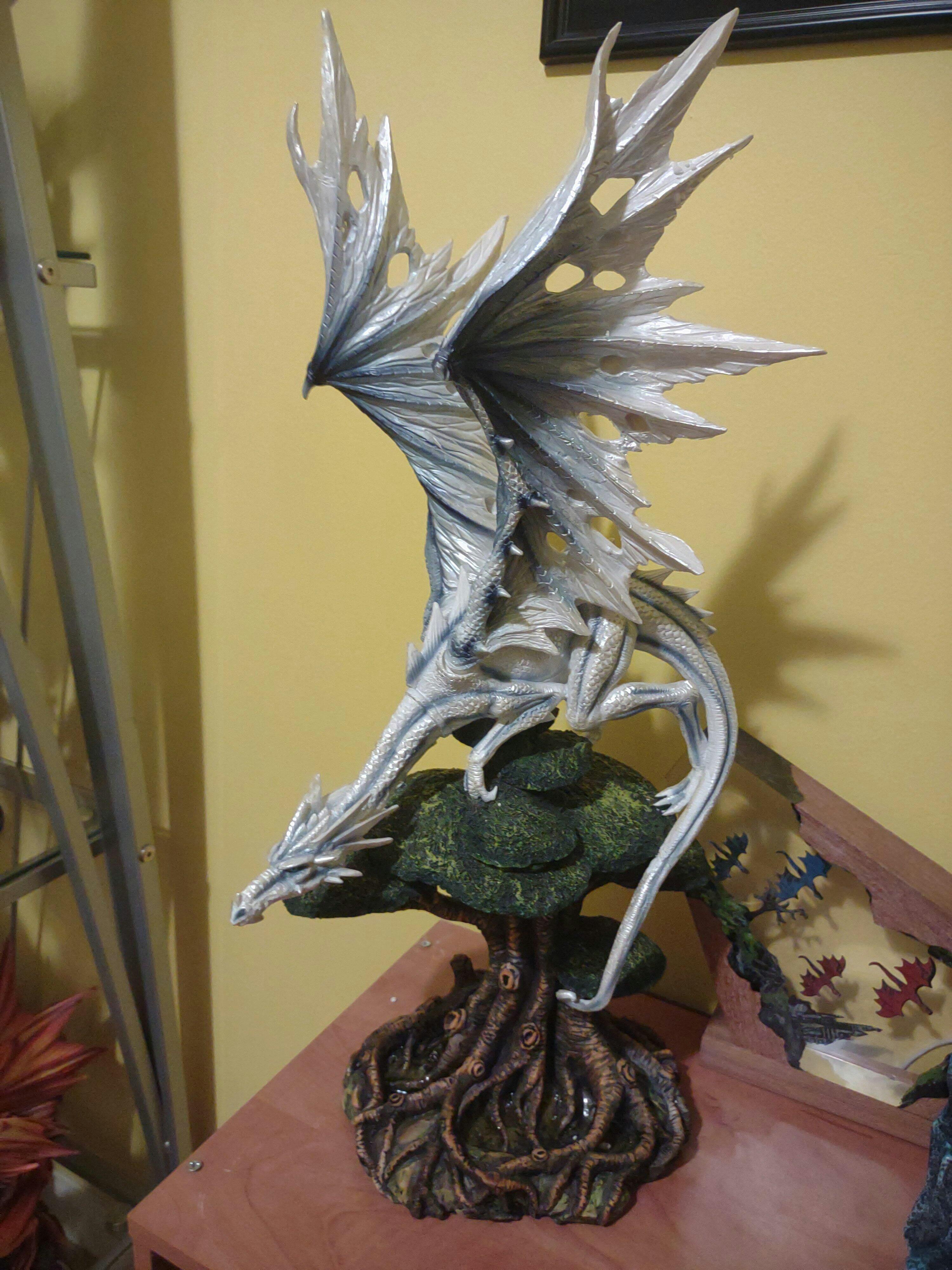 White Dragon on a Tree Figurine